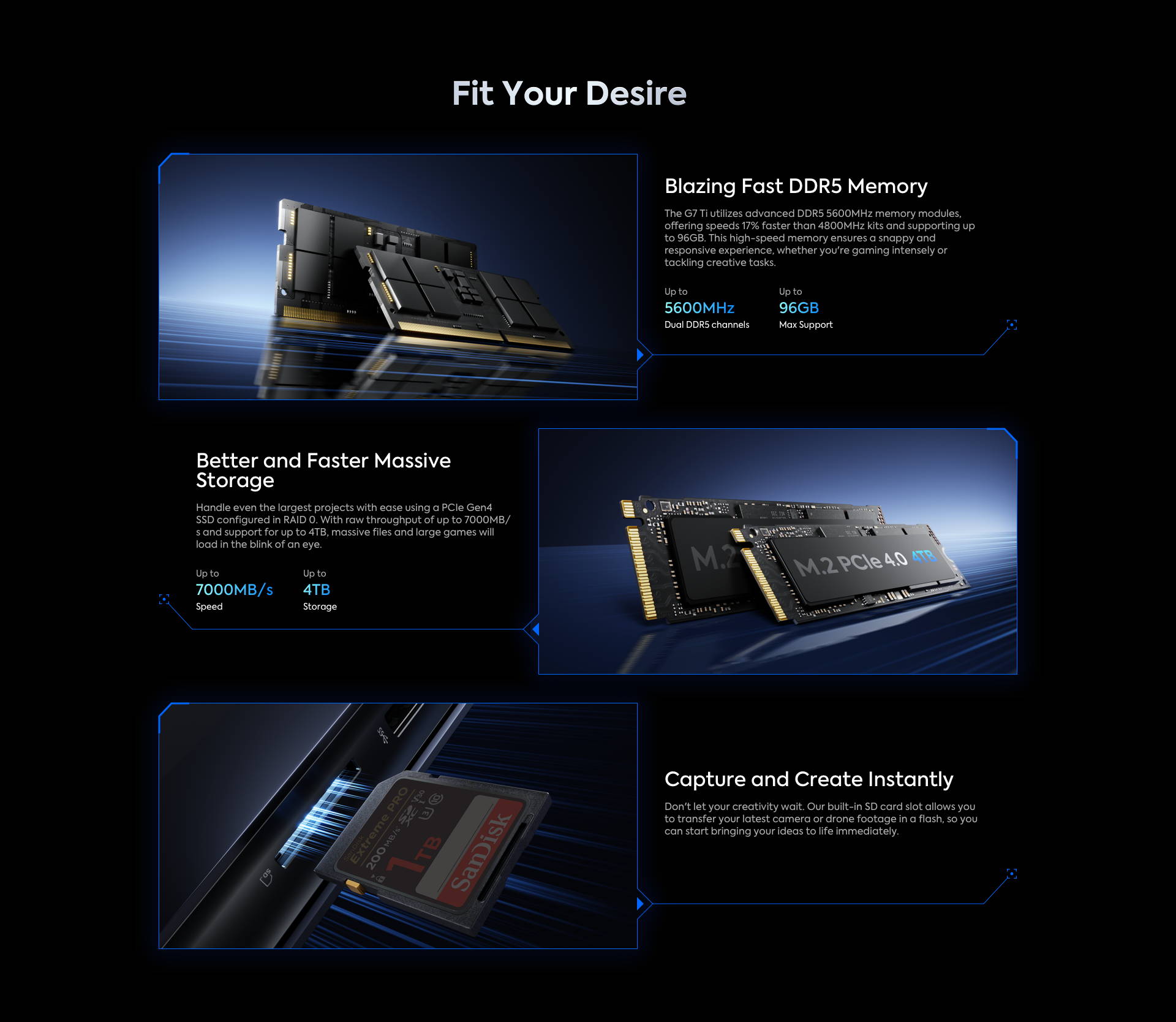 - DDR5 Dual channels (SODIMM Slots, up to 5600 MT/s, Max 96GB