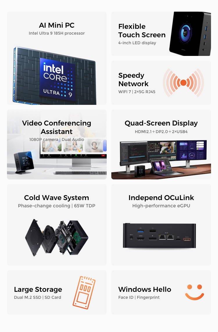 Equipped with the industry's most powerful 4-inch touch screen, easy to use and feature-rich. Support systemmonitoring, performance adjustment, time display and personalized theme switching, so that you can grasp the operating status of the host in real time.