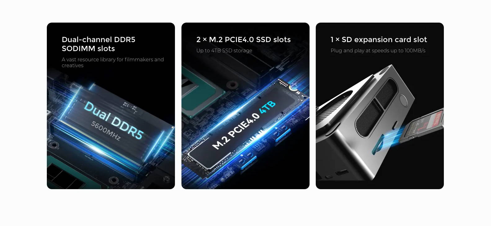 Dual memory slots + dual M.2 ports + SD card slot