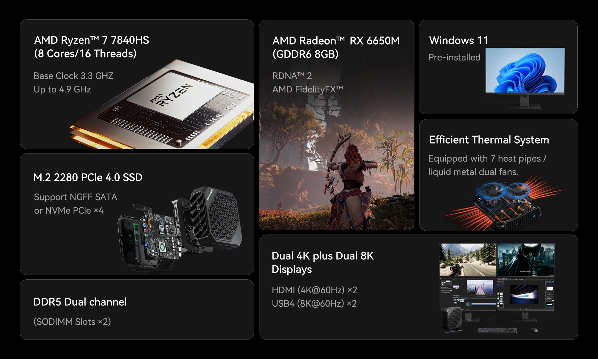 HX100G: AMD Ryzen™ 7 7840HS , 8 Cores/16 Threads