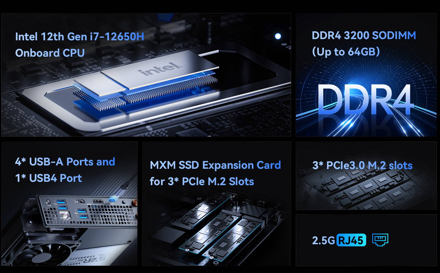 • DDR4 Dual channel (SODIMM Slots×2, up to 3200 MT/s, Max 64GB)