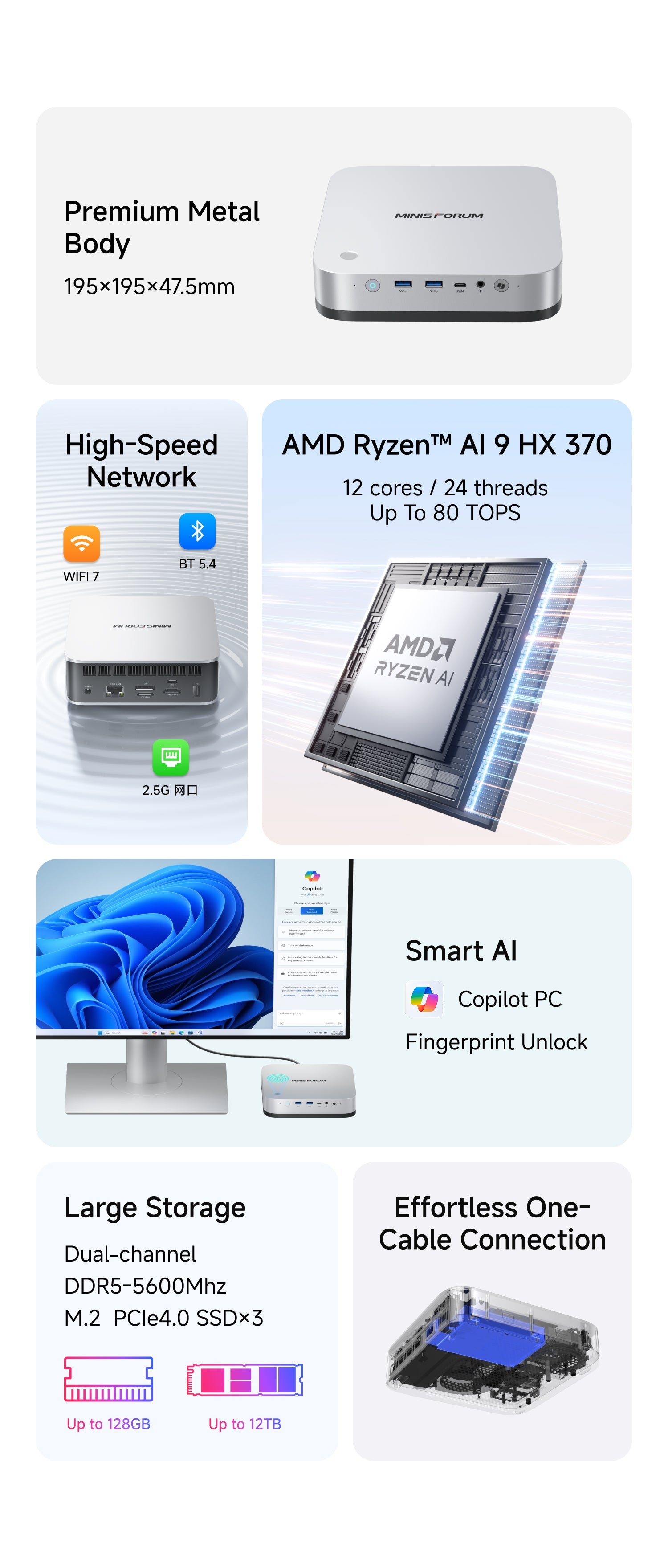 Powered by the cutting-edge AMD Ryzen™ AI 9 HX 370 processor, it provides a good balance of performance and energy efficiency, allowing you to run games and creative applications with ease. Built-in artificial intelligence enhancements, experience next-generation AI technology, accelerate multitasking, significantly improve productivity, and enhance team collaboration.