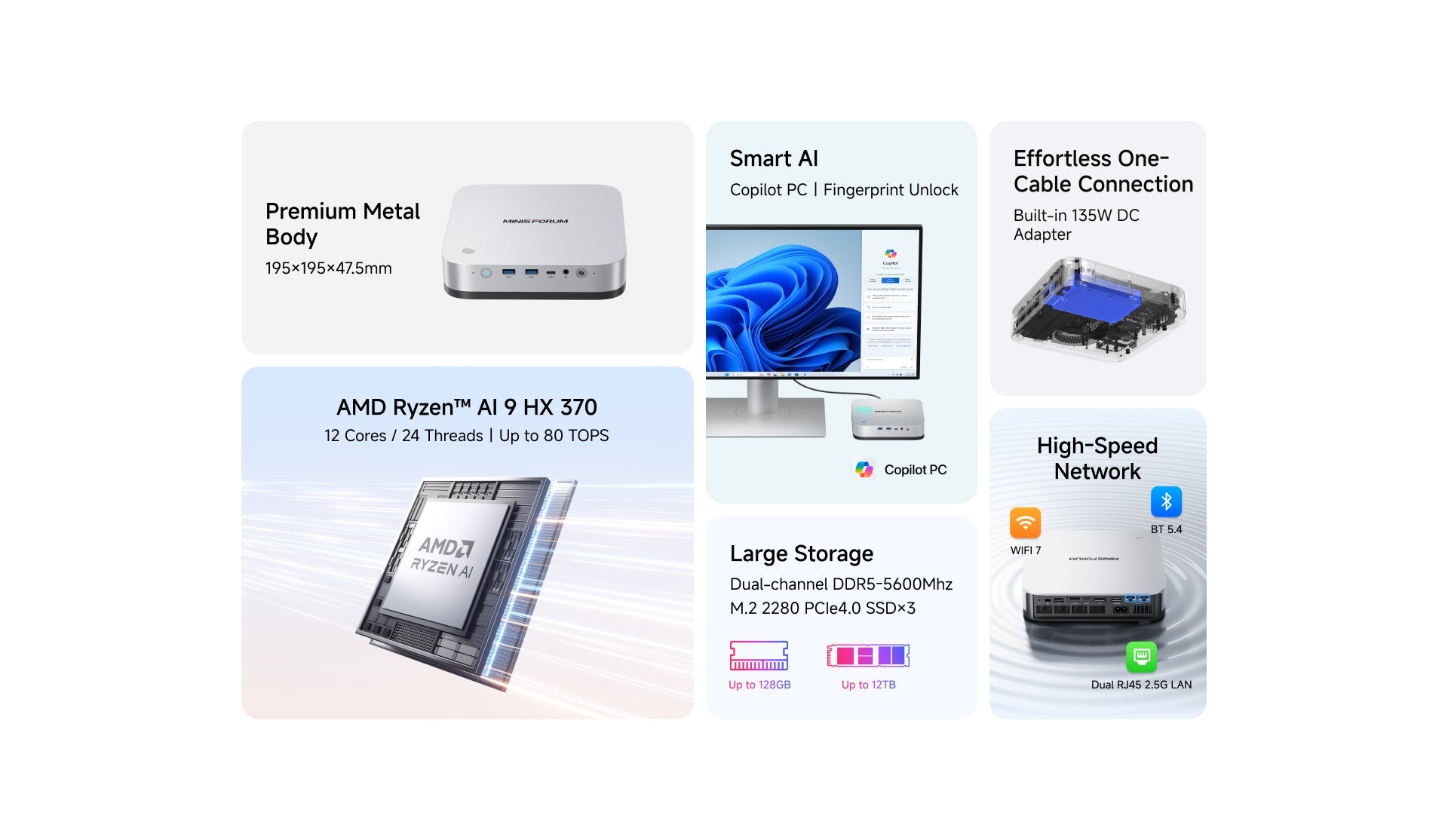 Up to 128GB, ensuring smooth operation of multiple high-load applications. Whether it's video editing, 3D rendering, or AI development, it can efficiently handle vast amounts of data, preventing system lag and crashes.