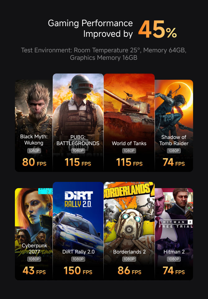 Achieve data transfer speeds of up to 40Gbps. It can transfer large amounts of data in a very short time, greatly improving the work efficiency of users who need to frequently transfer large files. Connect a high-performance graphics card via USB4, and the graphics processing capability is significantly improved, supporting higher-resolution output and multi-monitor display.