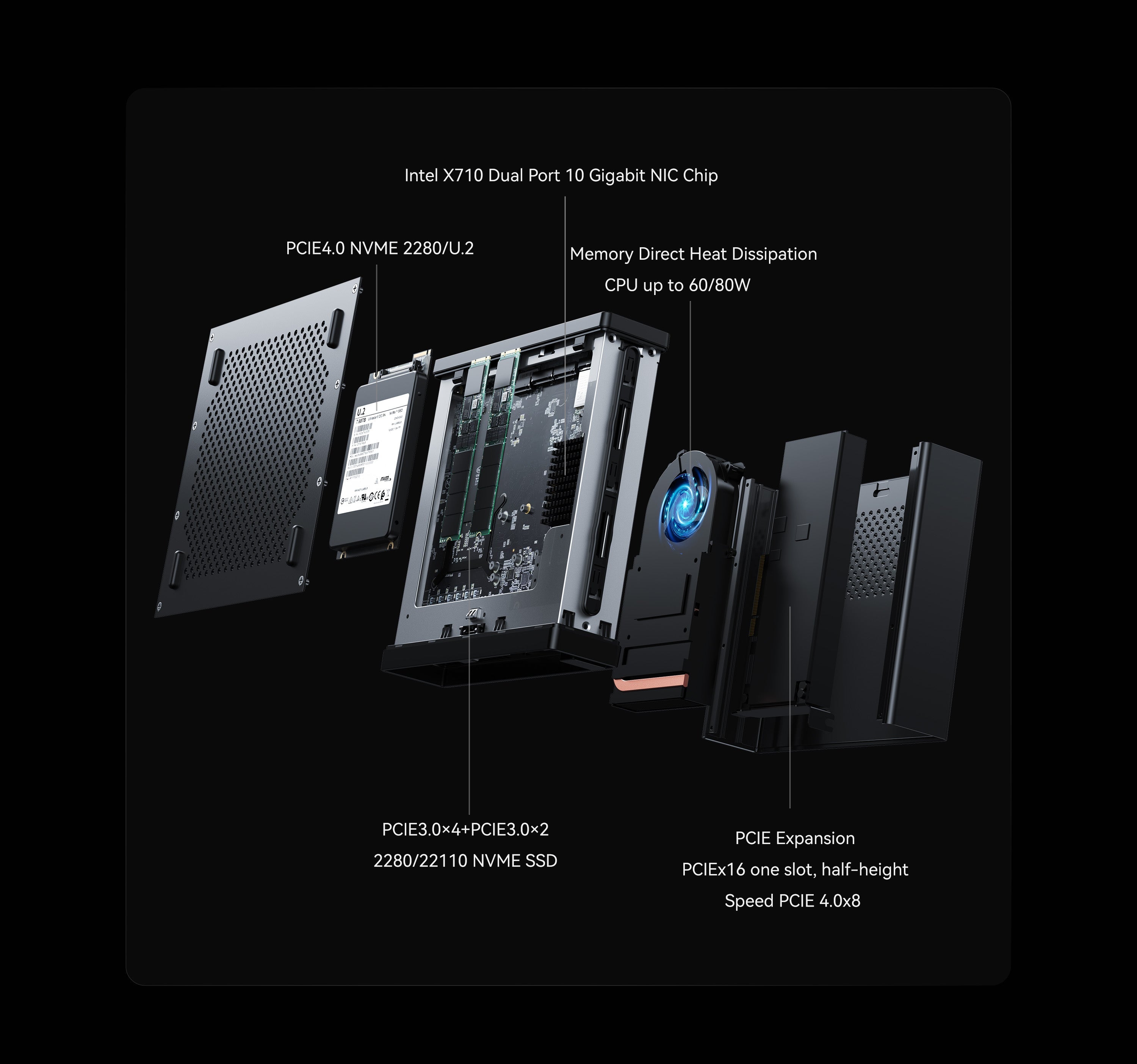 The MS-01 is equipped with a PCIe 4.0 x16 slot, allowing for the installation of high-performance external GPUs, network cards, storage controllers, and other external devices. The PCIe 4.0 x16 slot enables faster data transfer, delivering optimal performance in various applications that require high computational power and bandwidth, such as gaming, video editing, and 3D rendering.