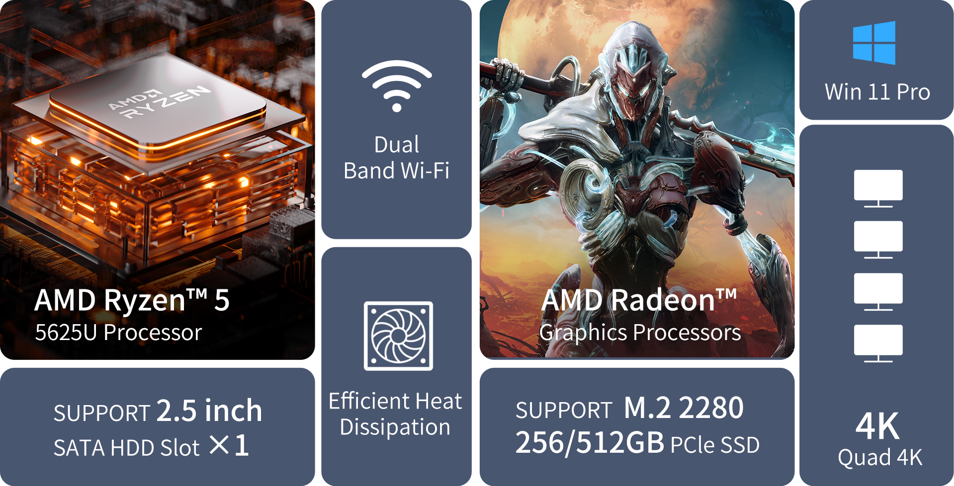 - AMD Ryzen™ 5 5625U, 6 Cores/12 Threads