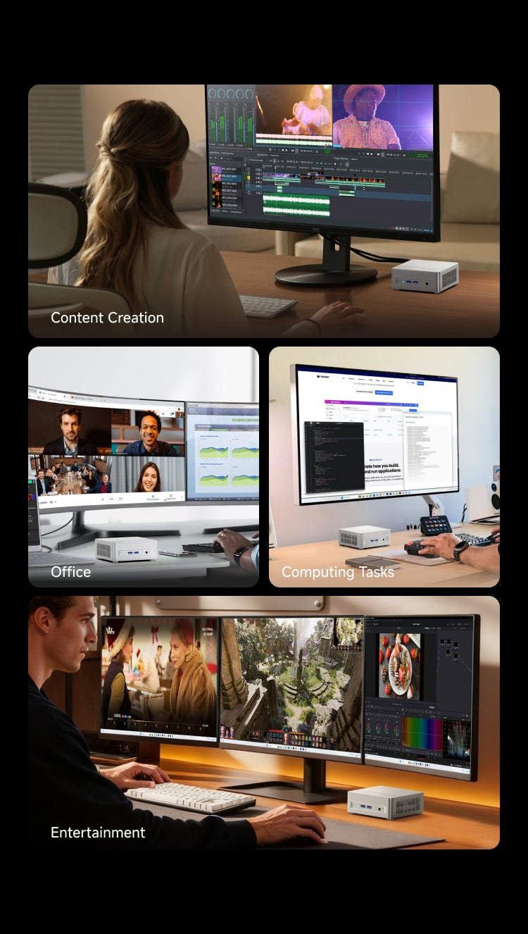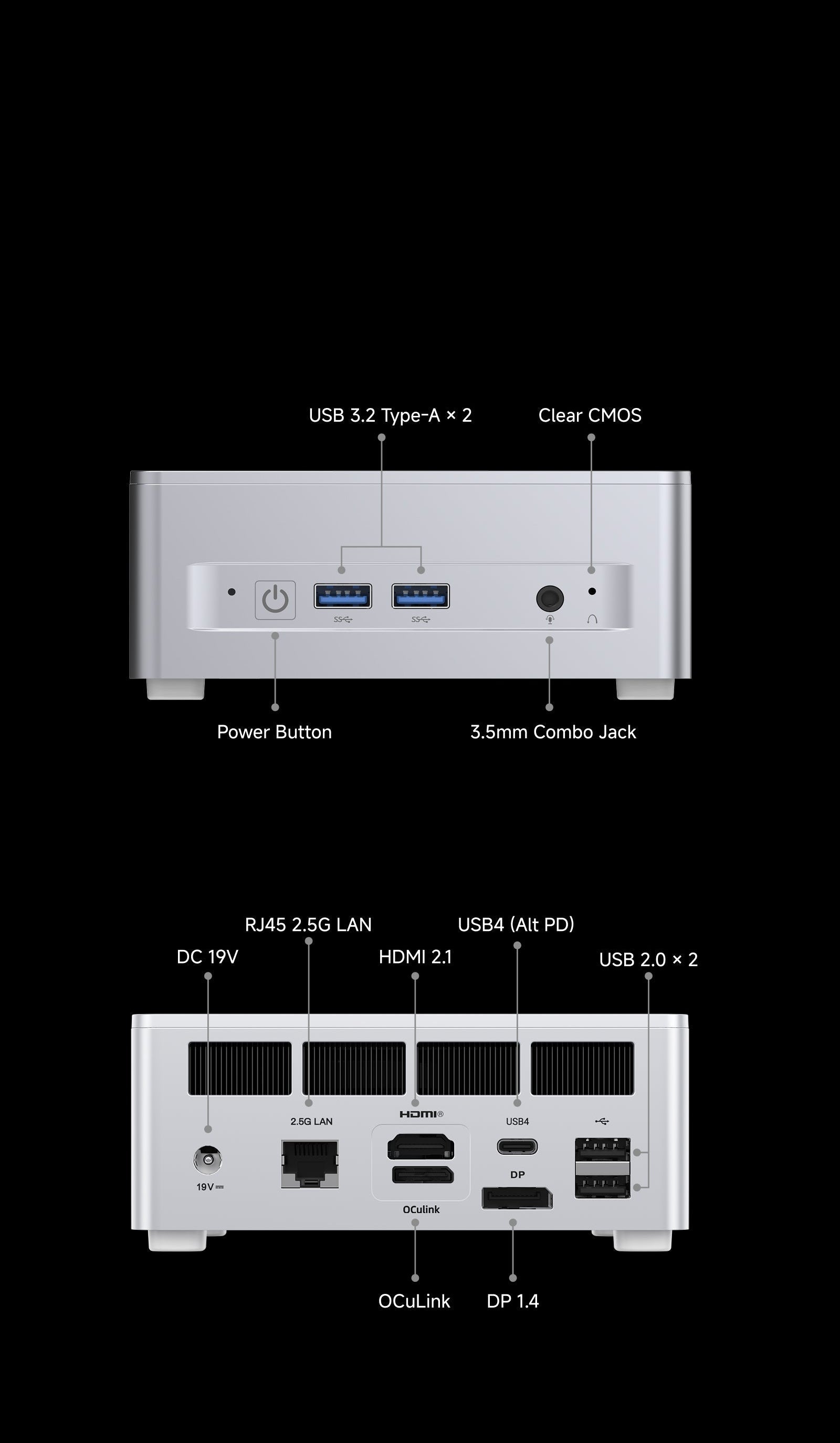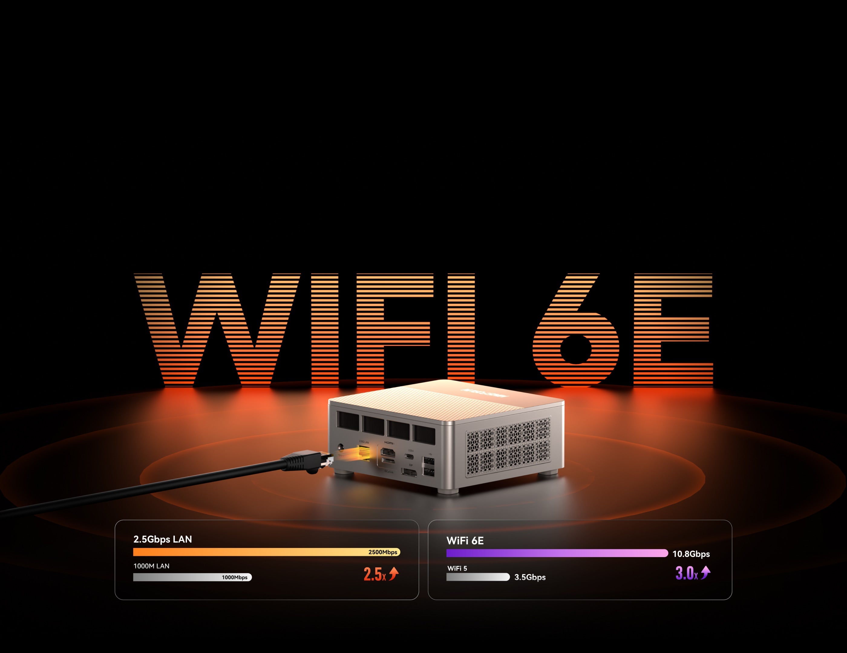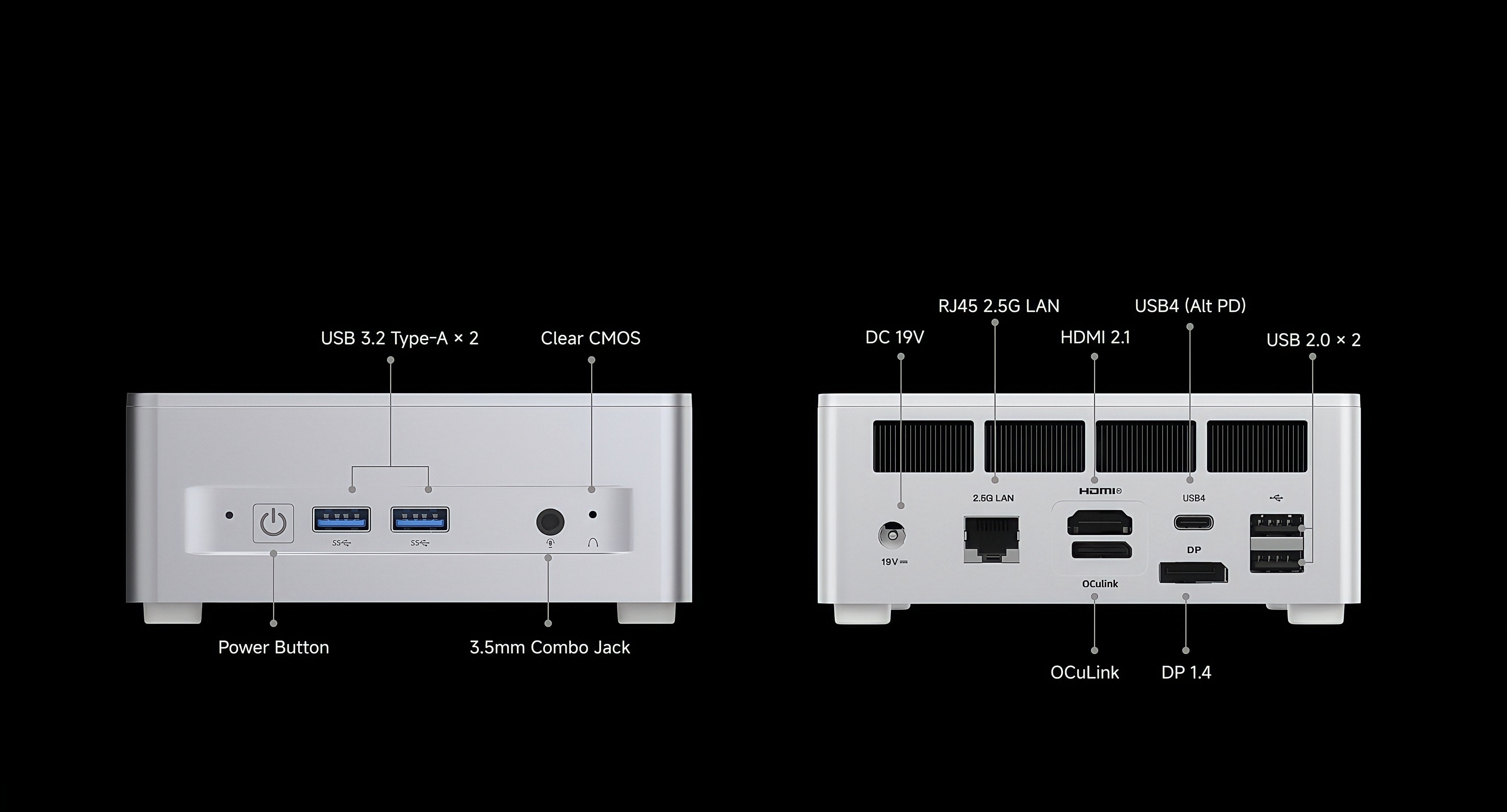 Dual channel DDR5 + Dual M.2 SSD slots, configurable up to 64GB RAM + 1TB SSD, expandable to 128GB RAM + 8TB SSD