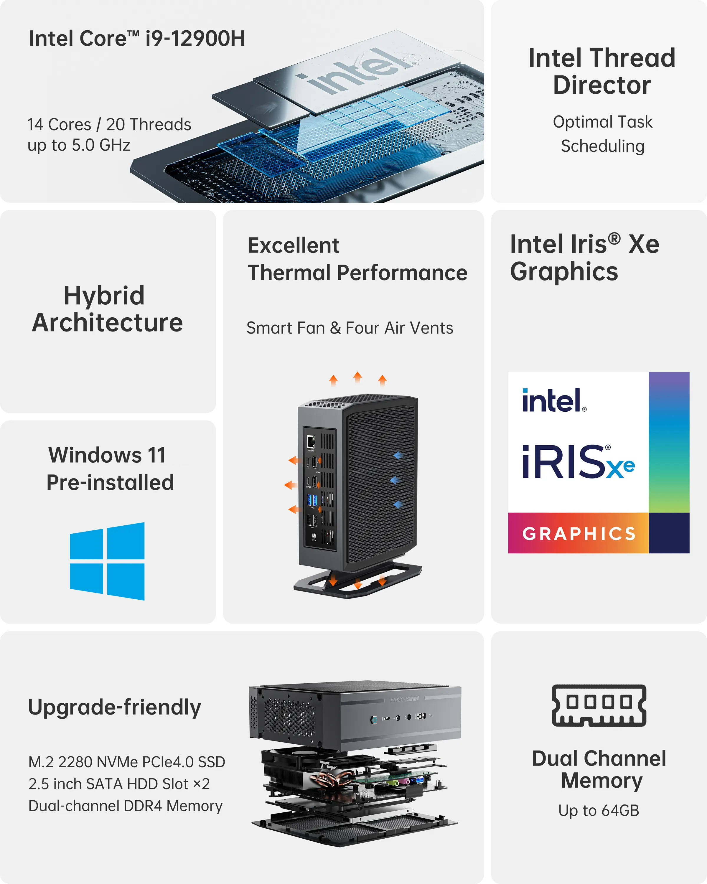 - Intel® Core™ i9-12900H Processor, 14 Cores/20 Threads