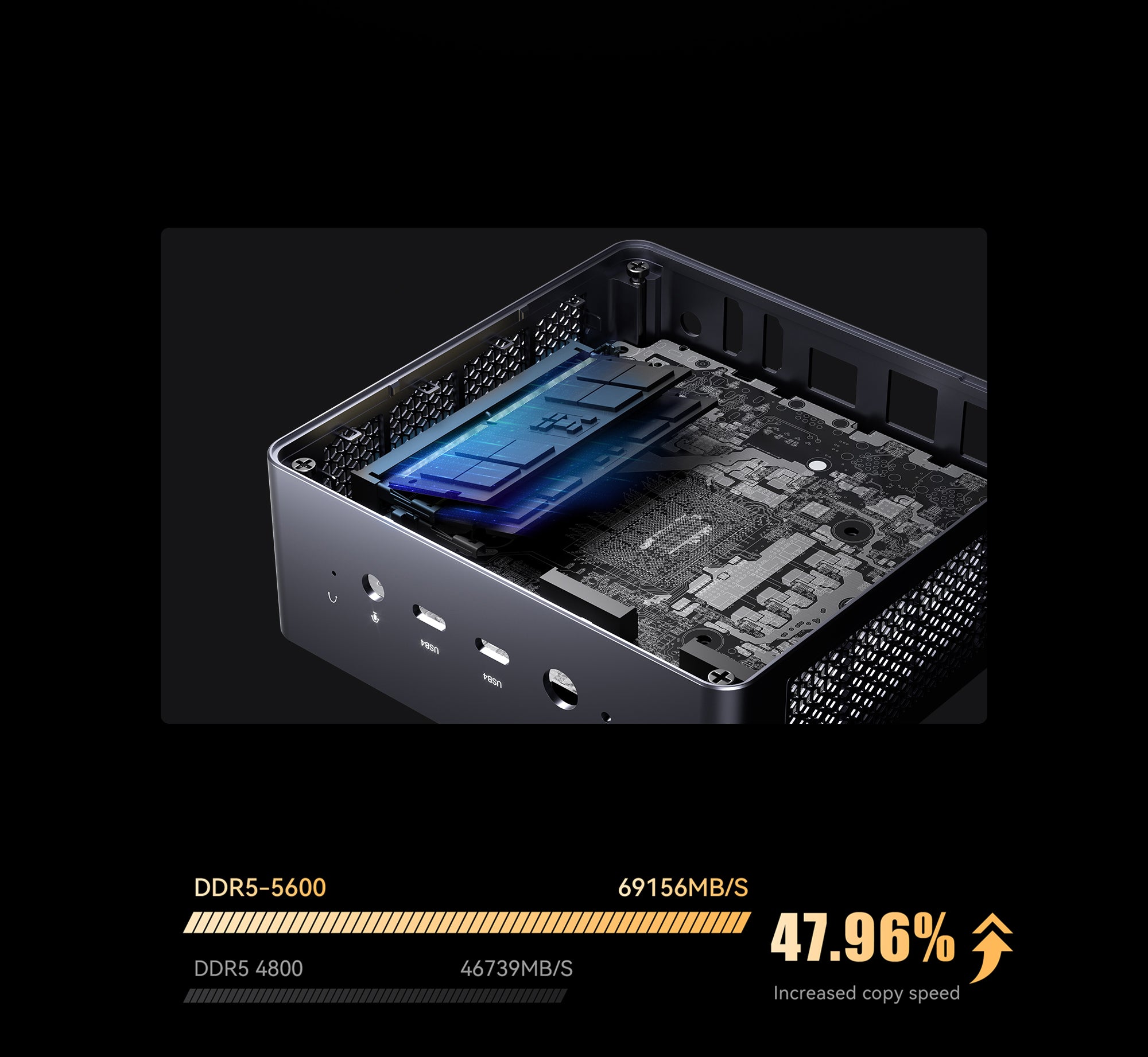 DDR5 Dual channel (SODIMM Slots×2, Up to 5600MHz, Max 64GB)